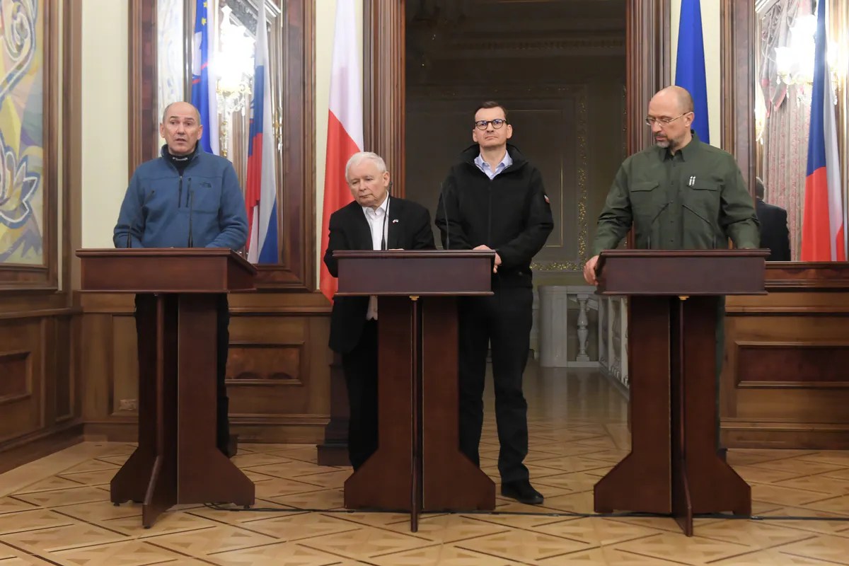 Mateusz morawiecki, jarosław kaczyński, petr fiala i janez janša byli w ukraińskiej stolicy spotkać się prezydentem ukrainy wołodymyrem .